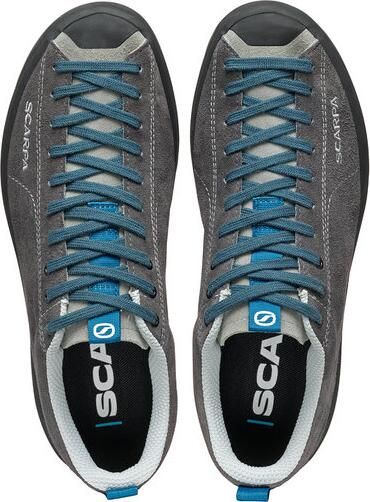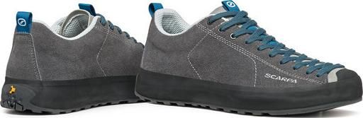 "The Scarpa Mojito Wrap is a sustainable and stylish sneaker that is perfect for everyday wear, climbing and leisure activities. With its climbing-inspired lacing and handcrafted rubber rand, it offers exceptional comfort and safety. The upper material is made from Evolo suede, which is produced using an innovative recycling process and is therefore environmentally friendly. The lining, sole and insole are also largely made from recycled materials, making the shoe an environmentally conscious choice."