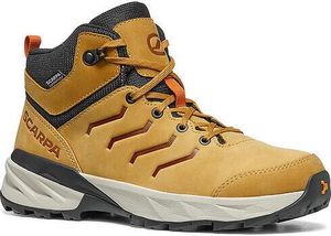 "The RS Pro WP-Y from Scarpa is the perfect companion for anyone looking forward to daily adventures and leisure activities. This multifunctional shoe offers protection and comfort for every outdooradventure, whether in everyday life or on long walksu00e4ngen. The high-quality nubuck leather upper not only gives the shoe an appealing look, but also a high level of durability. The mid-height shaft provides additional support and stability, while the waterproof membrane reliably protects against the wet. This keeps your feet dry and comfortable even in adverse weather conditions."