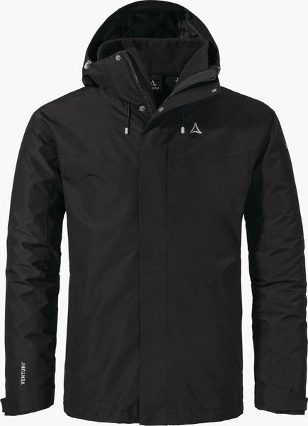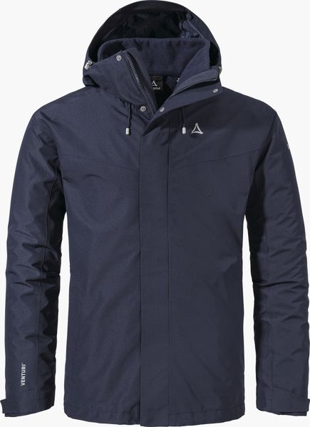 "The 3in1 Jacket Style Okere for men by Schu00f6ffel is the ideal companion for all outdooradventures, whether hiking, everyday life, leisure or traveling. This versatile jacket offers reliable protection from wind and weather thanks to the 2-layer VENTURIu00eae membrane. With a wateru00e4ule of 10,000 mm and breathabilityu00e4t of 10,000 MVTR, it ensures that you stay dry and comfortableu00even in adverse conditions. The fully taped seams reinforce the waterproofness and guarantee an undisturbed outdoor experience."