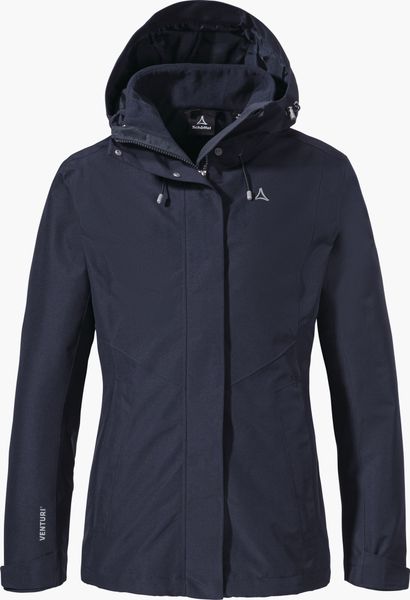 "The Style Okere Women 3in1 jacket from Schu00f6ffel is the ideal companion for outdooradventures and everyday life. This versatile jacket combines functionality with comfort and style, making it perfect for hiking, leisure activities and traveling. Thanks to the 2-layer VENTURIu00e membrane, the jacket is both waterproof and breathable, making it reliable protection in a wide range of weather conditions. The fully taped seams and the performance membrane with a wateru00e4ule of 10,000 mm and breathability of 10,000 MVTR guarantee maximum comfort"