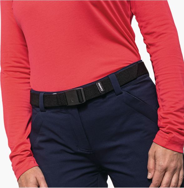 "The infinitely adjustable design of the belt ensures a perfect fit, whether you wear it over thin hiking trousers or thicker outdoor trousers. The lightweight, logged plastic buckle and u00u00u2019snapu2019system make it easy to put on and take off, while the adjustable belt loop with logou2019patch adds a stylish accentu2019."