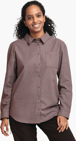 "The Style Boyoma Women blouse from Schu00f6ffel is the ideal companion for anyone who values comfort and sustainability. This hiking blouse is made from 100% organic cotton and impresses with its soft flannel material, which ensures a pleasant feeling of warmth. The relaxed fit offers optimum freedom of movement, while the offset shoulder seam prevents unpleasant chafing, especially on long hikes or active outdoor adventures."