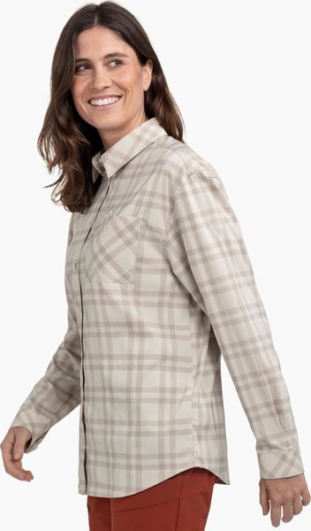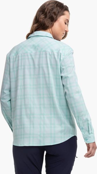 "Lightweight, stretchy women's blouse with UV protection and odor-inhibiting effect, ideal for hiking and everyday wear."