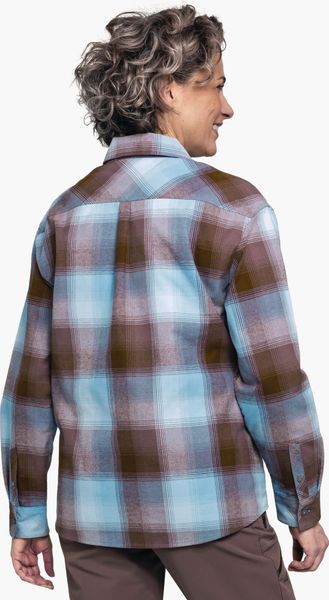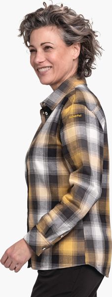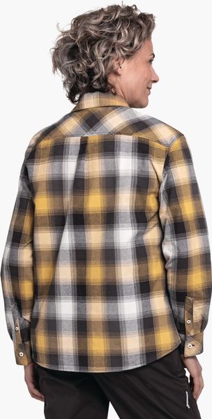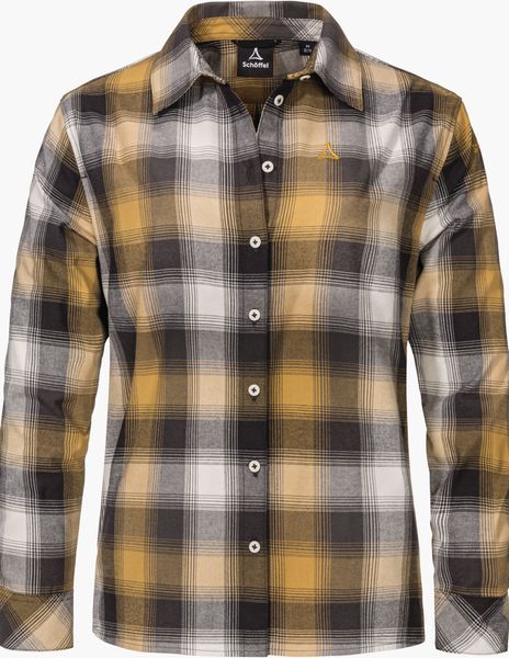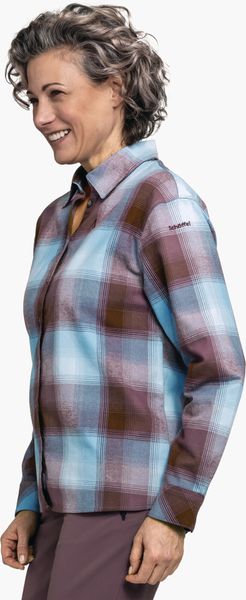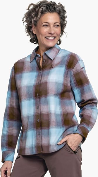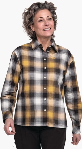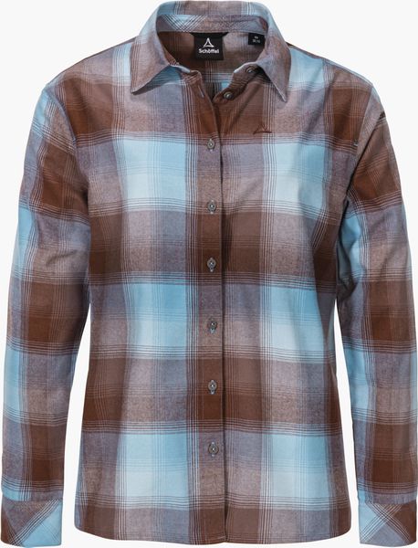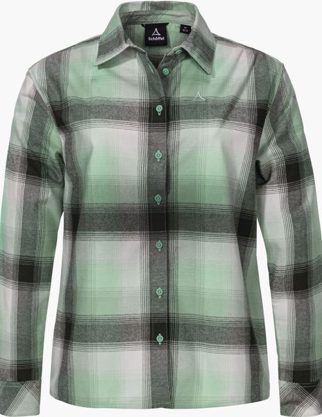 "Discover the versatility of the Style Limedes Women blouse from Schu00f6ffel, which is ideal for traveling and hiking. This blouse in a relaxed fit not only offers a high level of comfort, but also practical features such as roll-up sleeves that can be perfectly adapted to changing weather conditions. The shirt collar and full-length button placket lend the blouse a classic elegance that is equally at home in the great outdoors as it is in the city. It also scores points with its warming properties, which will keep you at a pleasant temperature on cooler days"