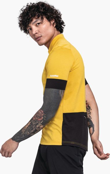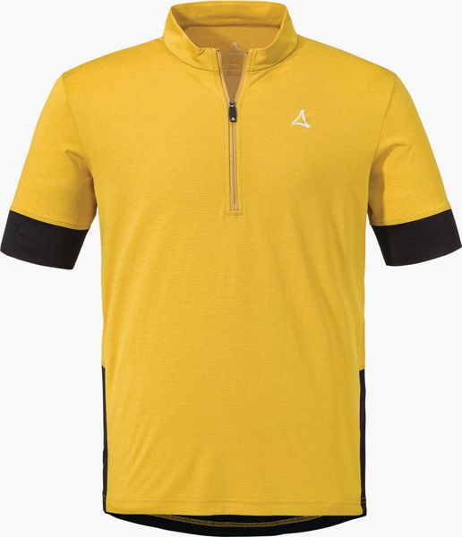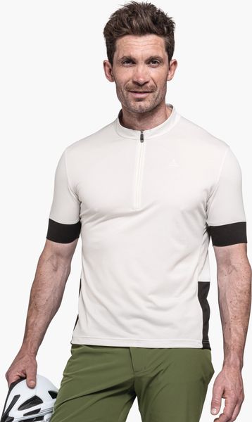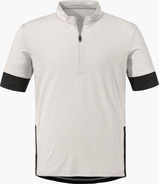 "Experience an environmentally conscious and comfortable ride with the Circ Shirt Style Pinega for men from Schu00f6ffel. This innovative shirt from the CIRC collection is almost completely recyclable, making it a sustainable choice for environmentally conscious cyclists. Thanks to the 4-wege-stretch material, the shirt offers maximum freedom of movement so that you remain flexible and unhindered on every ride. The half zip ensures optimum ventilation during intense activities, while the stay-down puller keeps the zipper securely in place."