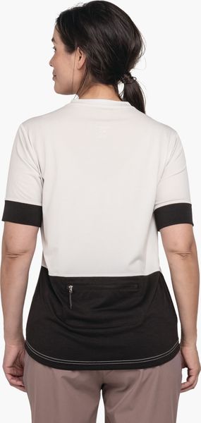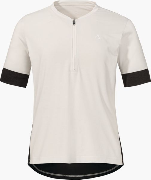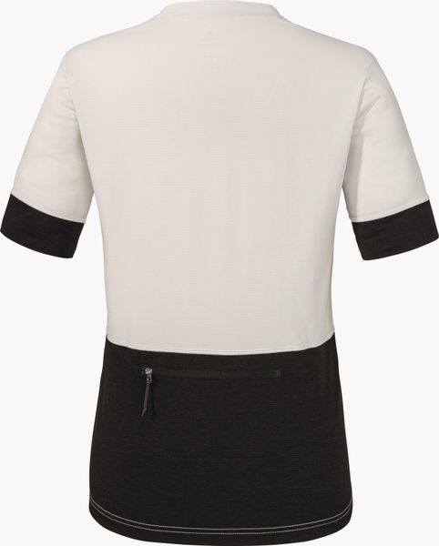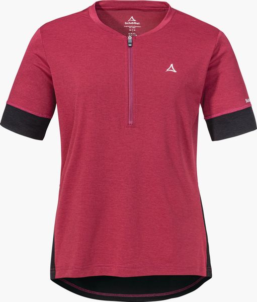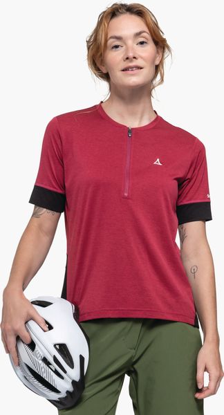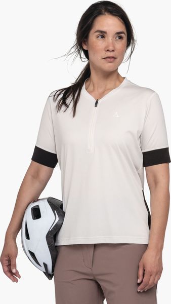 "Experience environmentally friendly cycling tours with the Circ Shirt Style Pinega for women from Schu00f6ffel. This innovative shirt from the CIRC collection is almost completely recyclable and offers maximum comfort thanks to its bike-specific fit. Thanks to the 4-wege-stretch-material, you enjoy maximum freedom of movement, while the half-zip ensures ideal ventilation, even during intensive activities. The stay-down puller keeps the zip securely in place and a practical back pocket with zipper closure offers additional storage space for your essentials."