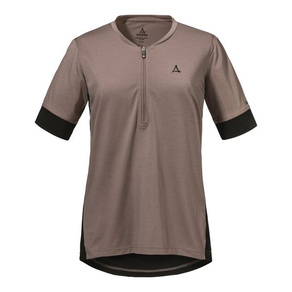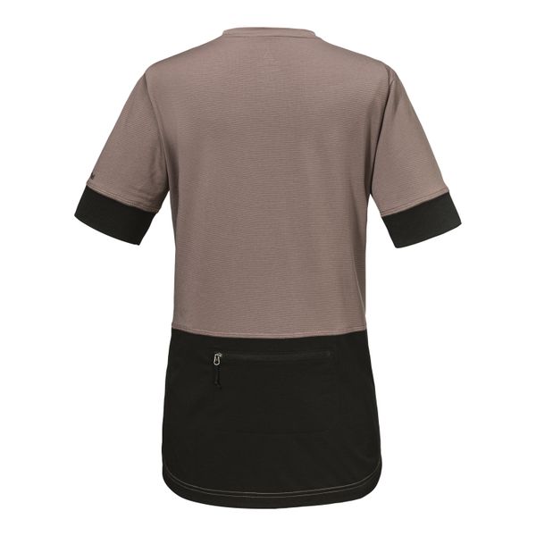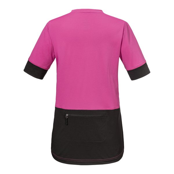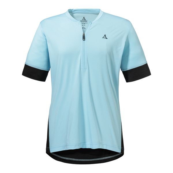 "The Circ Shirt Style Pinega Women by Schu00f6ffel is the perfect choice for eco-conscious cyclists who value comfort and functionalityu00e4t. Made from almost 100% recyclable material, this shirt combines sustainability with state-of-the-art technology. The integrated UV protection (UPF 30+) offers optimum protection on sunny rides, while the halfzip ensures individually adjustable ventilation."