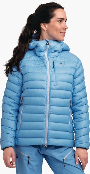 "The Down Jacket Silvretta Women by Schu00e6ffel is the ideal choice for anyone who values lightness and warmth on ski tours. With its extremely lightweight Pertex Quantumu00eae technology, this down jacket not only offers outstanding thermal insulation, but also excellent breathabilityu00e4t. The high-quality down filling with a fill power of 800 cuin ensures a cozy feel, while the water and wind-repellent material offers optimum protection from the elements"
