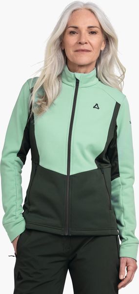 "The "Style Pontre Women" fleece jacket from Schu00f6ffel is the ideal companion for anyone who wants to rely on uncompromising functionality and comfort when skiing and other dynamic outdoor activities. Thanks to the innovative construction without shoulder and side seams, pressure points are effectively avoided so that you can concentrate fully on your adventure. The 4-wege stretch ensures maximum freedom of movement, while the stand-up collar with chin guard and elasticated hems on the sleeves and body provide additional comfort"