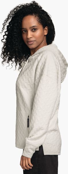 "Stylish, recycled women's hoody with a 3D jacquard pattern and quick-drying sweat fabric for leisure and everyday wear."