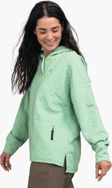 "The Style Vindave Women hoody from Schu00f6ffel perfectly combines style and comfort. With its graphic 3Djacquard pattern and quick-drying sweat fabric, it not only looks great but also offers outstanding functionality. The hoodie is ideal for leisure and everyday wear and features a loose fit and dropped shoulders for a relaxed feel. The hood with a wide overlap and press stud offers additional protection and comfort."