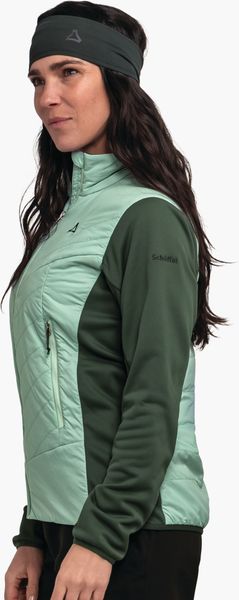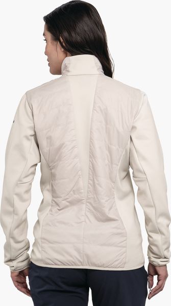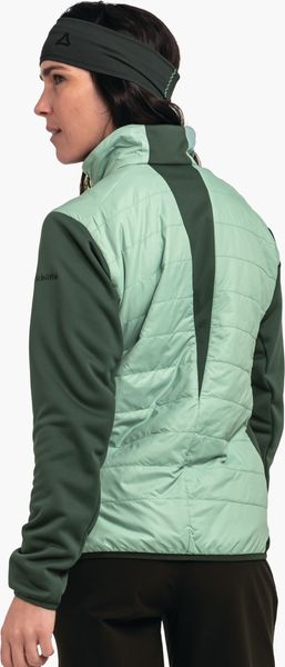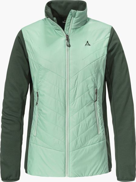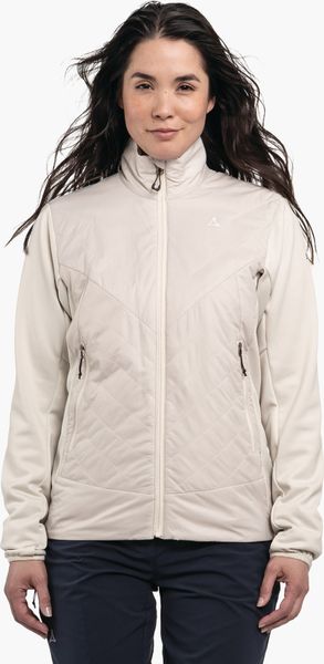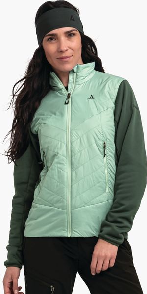 "Experience unparalleled comfort and protection on your outdooradventures with the Hybrid Jk Style Cascata Women from Schu00f6ffel. This innovative jacket is specially designed for longer trekking and hiking tours and offers a perfect combination of functionalityu00e4t and styleu00e4t. Thanks to the hybrid construction with water and wind-repellent, padded zones, you will stay dry and warm even in inclement weather. The PrimaLoftu00u00ae Black Insulation Eco not only provides excellent thermal insulation, but is also environmentally friendly as it is made from recycled material."