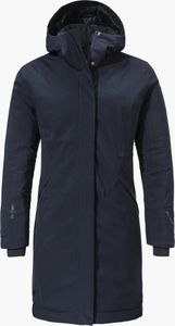 "The Ins Coat Style Gregale Women by Schu00f6ffel is the ideal companion for leisure, everyday life and travel. This outleisure parka impresses with its versatile properties and modern design. Thanks to the 2-layer VENTURIu00ae membrane, the coat is both waterproof and breathable, making it perfect for changeable weather. The fully taped seams with a performance membrane of 10,000 mm wateru00e4ule and a breathabilityu00e4t of 10,000 MVTR ensure optimum protection from the wet, while the PrimaLoftu00ae Black Insulation Eco made from recycled material provides cozy warmth"