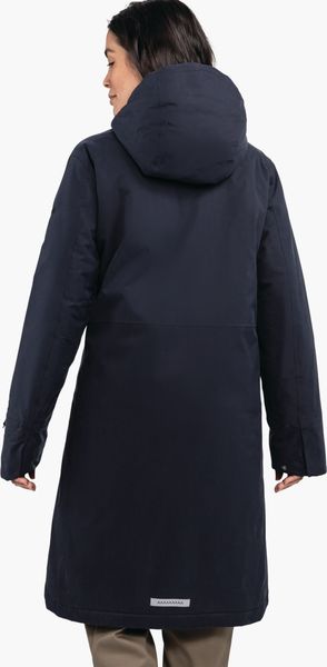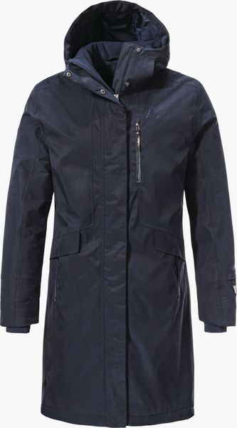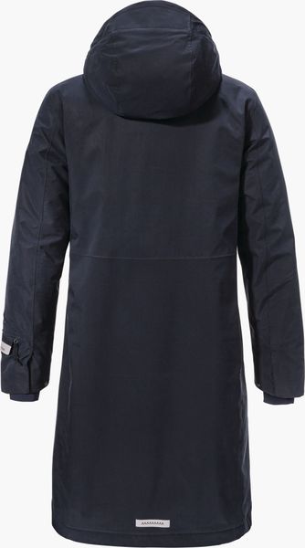 "The Ins Coat Style Kalmor Women by Schu00f6ffel is an innovative winter coat that impresses with both functionalityu00e4t and comfort. Perfect for leisure, everyday wear and travel, this coat offers reliable protection against rain thanks to the 2-layer VENTURIu00eae membrane and fully taped seams. The breathable, bio-based membrane made from corn stalks also ensures a comfortable wearing climate by effectively wicking away moisture"