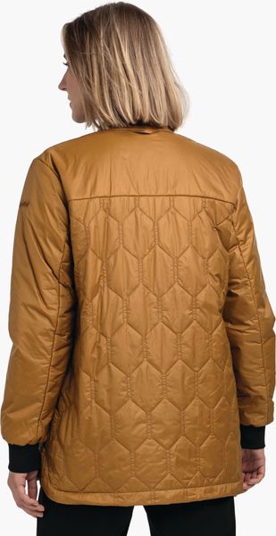 "A particular highlight of the jacket is the decorative combination of hexagonquilting and smooth pile, which creates a modern look. With 60gr padding, it offers excellent thermal performance and is therefore perfect for cold winter days in the city. The jacket has two practical side pockets with concealed press studs and an inside pocket that offers plenty of storage space. Made from recycled material, it is not only functional, but also sustainable. It can also be perfectly integrated into a layeringlook, as a matching outer jacket is available."