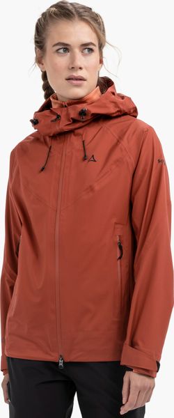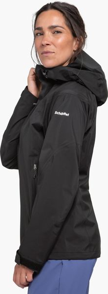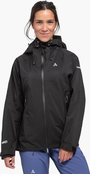 "The Schu00f6ffel Jacket Style Blaueis Women is the perfect companion for all hiking enthusiasts who don't want to miss out on their outdooru00f6adventure even in adverse weather conditions. This jacket impresses with its outstanding functionality and modern design. Made from hard-wearing nylon and equipped with a 3-layer Dermizaxu00u00ae NX Ripstop membrane, it offers optimum protection from wind and rain. With an impressive wateru00e4ule of 20,000 mm and breathability of 25,000 MVTR, it ensures that you stay dry and comfortable even on strenuous tours."