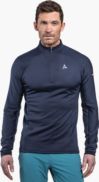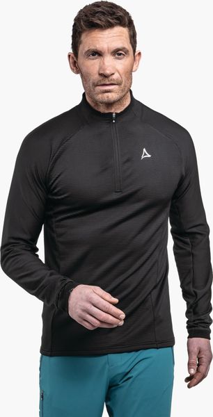 "Discover the ideal longsleeve for your hiking adventures in cooler temperatures. This versatile garment from Schu00f6ffel not only offers warming properties, but also maximum freedom of movement thanks to the innovative 4weavestretch material. So you can move freely and carefree in the great outdoors. The practical half zip with decorative stand-up collar allows you to ventilate quickly and easily, which is particularly beneficial during intensive activities."