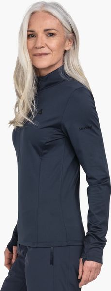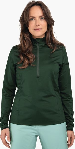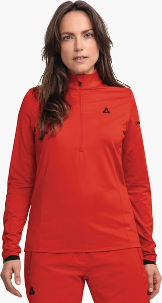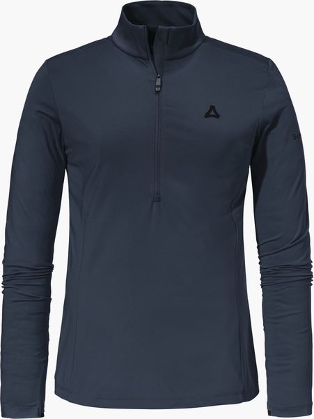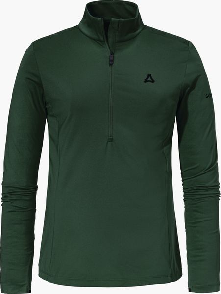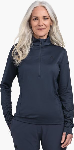 "Experience maximum comfort and flexibility on all your adventures with the Style Pine longsleeve for women from Schu00f6ffel. This versatile half-zip longsleeve is perfect for skiing and other sporting activities. The stand-up collar with chin guard and the laser-cut underlap offer you optimum protection against cold and wind. The innovative, seam-free shoulder design prevents potential pressure points, which is particularly beneficial when worn for long periods"
