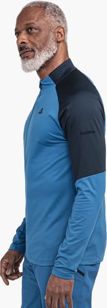 "Experience maximum comfort and functionality with the sporty Style Safoon longsleeve for men from Schu00f6ffel. This halfziplongsleeve is the ideal choice for skiers and anyone who likes to be active. The integrated stand-up collar with chin guard and laser-cut underlap offer optimum protection and comfort. Thanks to the innovative, seam-free shoulder construction, pressure points are avoided, which is particularly beneficial when worn for long periods"