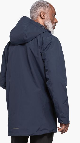 "Waterproof and breathable men's parka for everyday wear and travel made from recycled material with a modern fit."