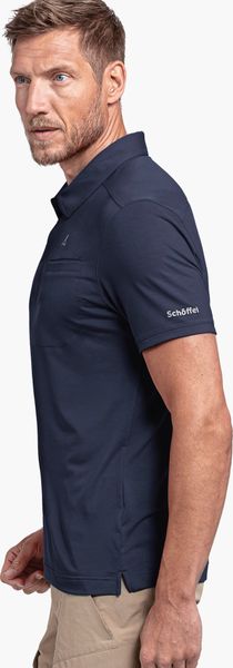 "Discover the Ramseck polo shirt for men by Schu00f6ffel, which stands for maximum performance and minimalist design. This quick-drying polo shirt is the ideal companion for hikes and everyday wear. Thanks to its 4-weave-stretch material, it offers maximum freedom of movement and enables unparalleled comfort. The regular fit cut and elegant polo collar give the shirt a touch of class, while the offset shoulder seam ensures a friction-free shoulder area."