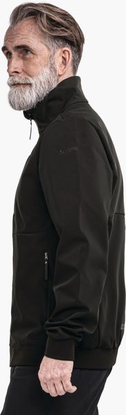 "The softshell bomber jacket from Schu00f6ffel combines sporty, urban style with outstanding functionalityu00e4t. Made from the innovative Venturiu00u00e softshellu2013 material, it offers reliable protection from wind and water, while its high breathability u00e4t (25k MVTR) ensures the best wearing comfort u2013 ideal for everyday wear and leisureu2013. The warm fleece inside keeps you nice and warm even on colder days. The stand-up collar with chin guard on the zip and the elasticated ribbed cuffs offer additional comfort and freedom of movement."
