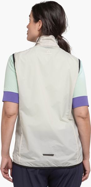 "Ultralight, breathable wind vest for female cyclists, water-repellent and environmentally friendly made from recycled material."