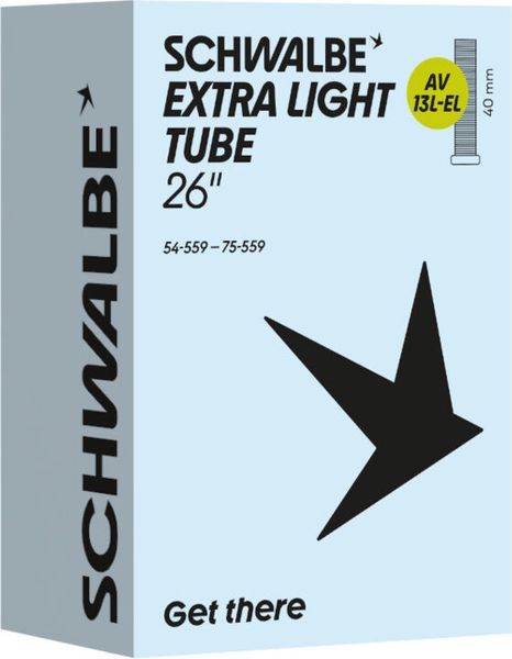 """Discover ""the ""Schwalbe ""AV13L ""Extralight ""inner ""tube, ""the ""ideal ""companion ""for ""all ""mountain ""bikersenthusiasts. ""This ""inner ""tube ""is ""specially ""designed ""for ""26 ""inch ""tires ""and ""offers ""an ""incomparable ""riding ""experience ""thanks ""to ""its ""low ""weight. ""Despite ""its ""lightness, ""you ""don't ""have ""to ""compromise ""on ""reliability, ""as ""the ""inner ""tube ""offers ""the ""same ""stability ""as ""a ""standardrollovertube."