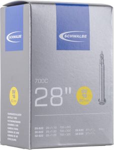 "The Schwalbe SV16 standard inner tube is the ideal choice for anyone looking for a durable and reliable tube for their 28inchbikes. This inner tube is specially designed for bicycle tires of size 28" Inch/700C (ETRTO 28/32-622/630) and impresses with its exceptional airtightness. Thanks to the high-quality material and the uniform wall thickness, the air remains in the tube for an above-average length of time, which means less frequent re-inflation and therefore increased riding comfort."