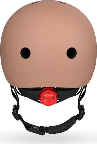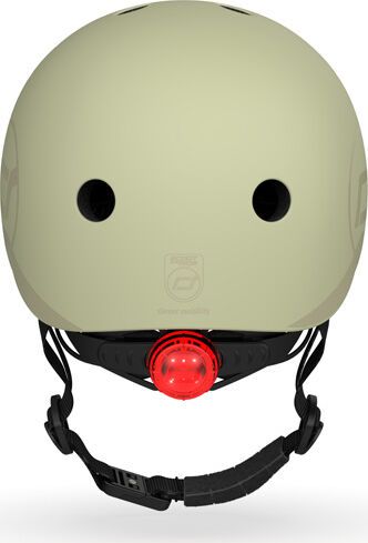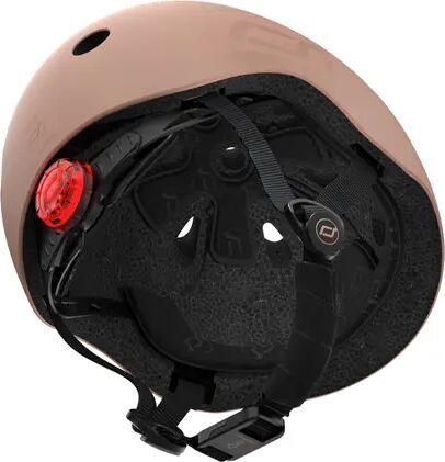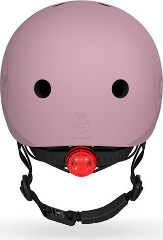 "The children's helmet from Scoot and Ride offers an optimum combination of safety, comfort and style. With its infinitely adjustable gru00f6u00dfen adjustment system at the back of the head, the helmet can be individually adapted to the shape of your child's head so that it fits securely and firmly at all times. A special feature is the integrated, battery-operated LEDlight in the adjustment wheel, which increases your child's visibility at dusk or in poor light conditions and therefore improves safety in road traffic"