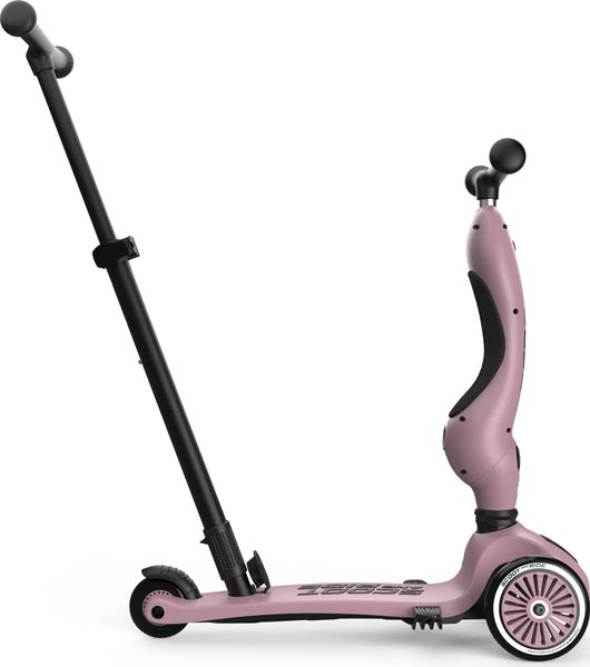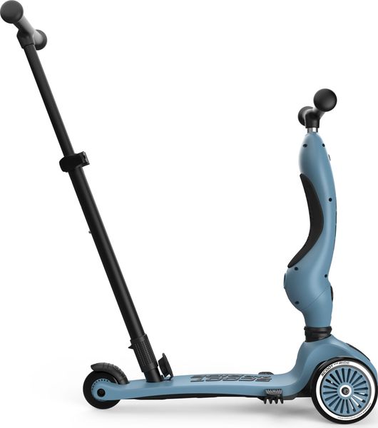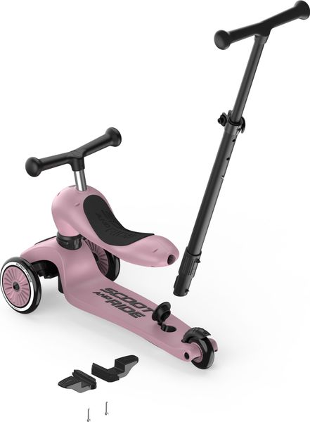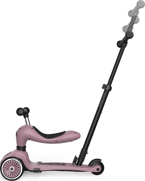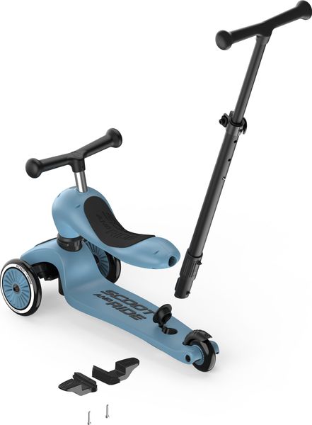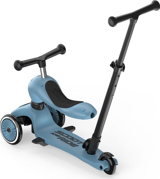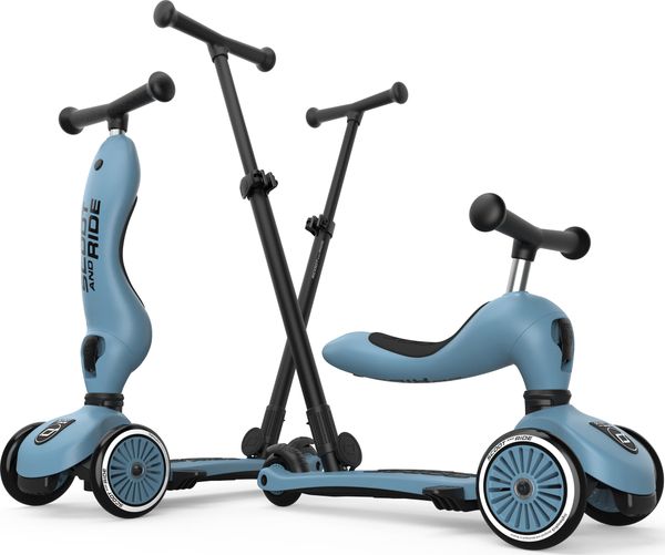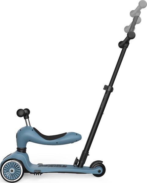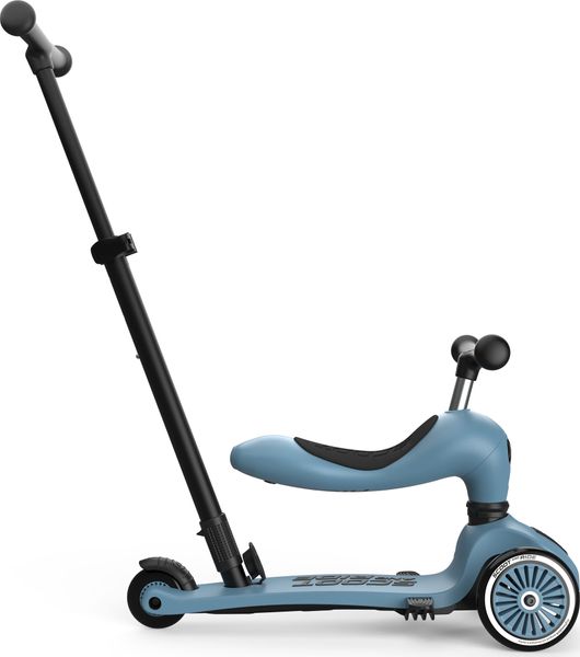 "The Highwaykick 1 Push & Go from Scoot and Ride is the perfect combination of fun and functionality for the little ones. The innovative parentpush bar adds a practical feature to the classic Highwaykick 1, allowing parents to push their children aged one to three years comfortably, regardless of whether they are sitting or standing. The push bar can be attached to the footboard of the scooter without tools and can be adjusted to three different heights to adapt perfectly to the needs of the parents."