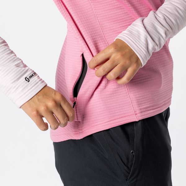 "Lightweight and breathable women's mid-layer with practical pockets, ideal for intensive ski excursions."