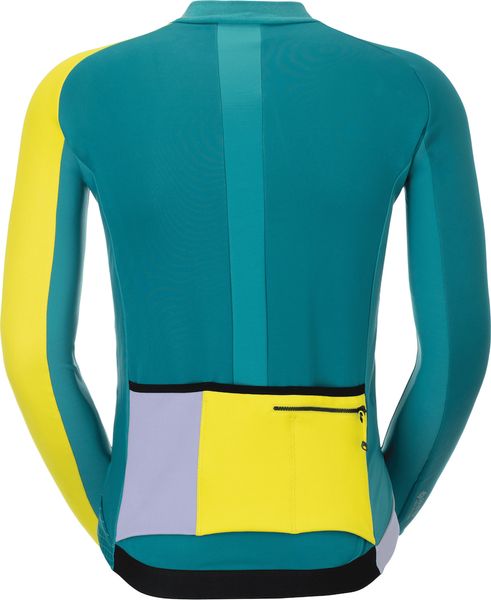 "Practical details such as the three back pockets and an additional water-repellent pocket offer sufficient storage space for important items. A meshinsert under the pocket also provides additional ventilation to ensure a comfortable fit even on strenuous rides. The jacket is ideal for dry weather conditions, as it effectively repels light rain, making it the ideal companion for any bike tour"
