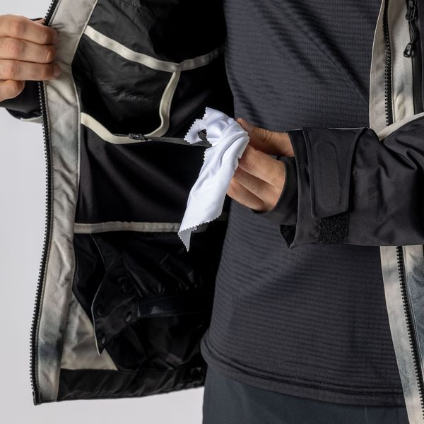 "A particular highlight is the integrated snow guard, which prevents snow from getting in, as well as the well thought-out pocket arrangement: two chest pockets, a ski pass pocket on the sleeve and an internal security pocket with zipper provide plenty of storage space for all your essentials. The jacket also has a special ski goggle pocket with a removable goggle wipe so that you always have a clear view on the slopes."