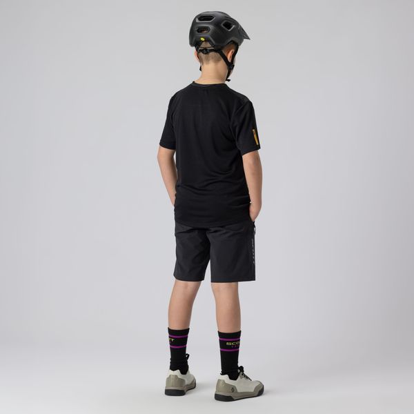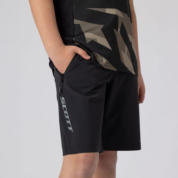 "The SCOTT Vertic Junior Shorts are the ideal choice for young adventurers looking for unrestricted freedom of movement and optimum protection on the bike or in their free time. Made from hard-wearing 4-wege stretch fabric, these shorts guarantee excellent adaptability and durability, even during demanding activities such as mountain biking. The elasticated hem ensures a perfect fit, while the fly with zipper and press studs offers additional comfort."
