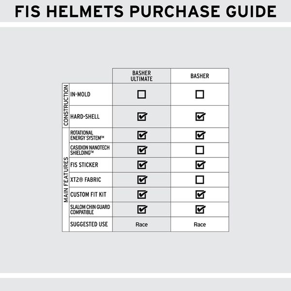 "The Basher Ultimate meets the strict safety standards of the FIS RH 2013, which qualifies it for all FISapproved racing events. With the Custom Fit Kit, you can customize the fit to ensure maximum comfort and stability. The helmet is also fully compatible with the SHRED. Hard-Ear chin guard, which provides additional protection. The low-profile, tapered shell made from SHRED.shieldu2122 hardened ABS offers durability and resistance to dents, which supports precision and speed in goal clearanceu00e4."