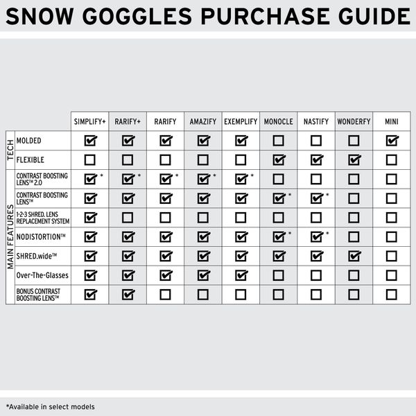 "With the SHRED. Exemplify, you not only experience clear vision, but also added comfort and safety. The advanced design boosts your confidence and performance on the slopes while keeping you looking stylish. Whether you are a beginner or a pro, these goggles will take your fun and performance to the next level."