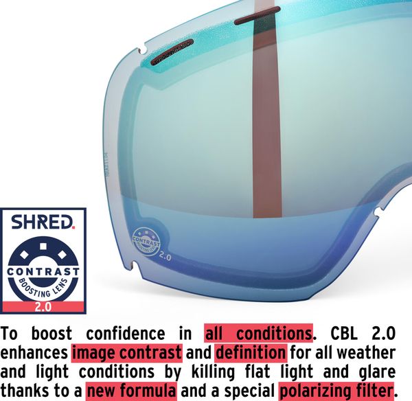 • "SHRED.wideu2122 | The glasses are designed and engineered to maximize your field of vision ||SHRED. CONTRAST BOOSTING LENSu2122 | Improves image contrast and sharpness in all weather and light conditions || SHRED. CONTRAST BOOSTING LENSu2122 2.0 Improves image contrast and sharpness in all weather and lighting conditions by suppressing flat light and glare effects. Available in selected models.|SHRED. NODISTORTIONu2122 | Pressure regulating valve technology for crystal clear vision with height differences.|SHRED. OTG | Designed to ensure compatibility and comfort with most prescription eyewear.|SHRED. NOCLOGu2122 | Hydrophobic treatment of the ventilation openings to reduce clogging from snow or water and prevent fogging.|0"