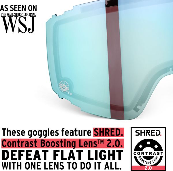 - "SHRED.wideu2122 | The glasses are designed and engineered to maximize your field of vision ||SHRED. CONTRAST BOOSTING LENSu2122 | Improves image contrast and sharpness in all weather and light conditions || SHRED. CONTRAST BOOSTING LENSu2122 2.0 Improves image contrast and sharpness in all weather and lighting conditions by suppressing flat light and glare effects. Available in selected models.|SHRED. NODISTORTIONu2122 | Pressure regulating valve technology for crystal clear vision with height differences.|SHRED. OTG | Designed to ensure compatibility and comfort with most prescription eyewear.|SHRED. NOCLOGu2122 | Hydrophobic treatment of the ventilation openings to reduce clogging from snow or water and prevent fogging.|0"