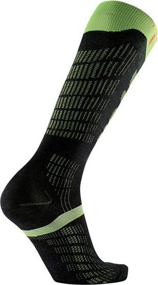 The Ski Ultrafit socks are high-performance ski socks that give you optimal precision, compression and power transfer. With their merino wool fabrication and non-slip Grip band, these socks provide optimal performance. The high performance ski socks Ski Ultrafit are knitted with 200 needles to provide comfort and precision skiing. With their compression and ultra low weight, they feel like a second skin and provide a direct connection to the boot. Bio merino wool and recycled polyamide contribute to the EcoTech design of the socks, as recycled fibers are used in their manufacture. Ultrafit socks support blood circulation and muscle stabilization using Compressives Tension technology (20-30 mmHg). This leads to better recovery of the skier, less muscle concussion and better performance . These performance ski socks are characterized by exceptional precision . This is made possible by the knitting pattern, thickness and resilience of the socks. They are knitted with 200 needles - one of the highest definitions available for socks - and are constructed entirely without cut threads (In & Out construction). Tension is high to ensure a perfect fit on feet and legs . The low thickness is optimal to improve contact with the ski boot and give comfortable wear. The silicone grip strip on the bottom of the foot improves contact with the soles and ski boots for optimal stability. The foot remains in contact with the sole, which allows better precision and power transmission. The merino wool that makes up the socks warms and at the same time wicks away moisture, leaving your feet breathable. Unisex model available in different sizes.
