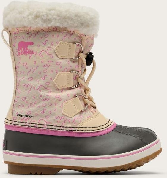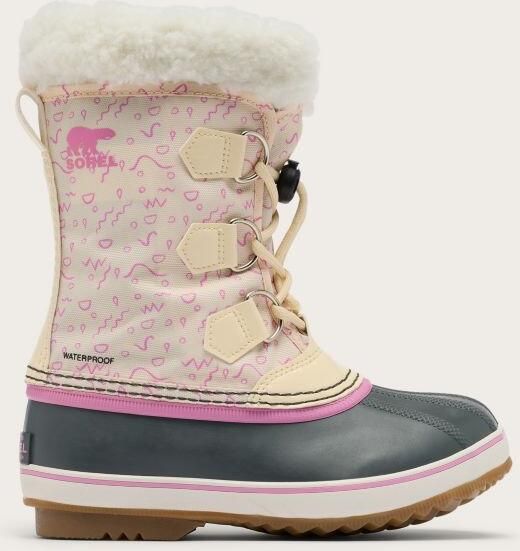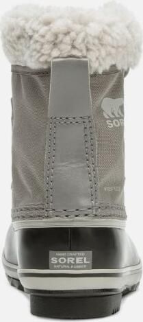 - "Waterproof nylon outer material, seam-sealed construction with cozy insulation. Removable, washable inner lining with sherpa collar. Toggle laces for easy handling."