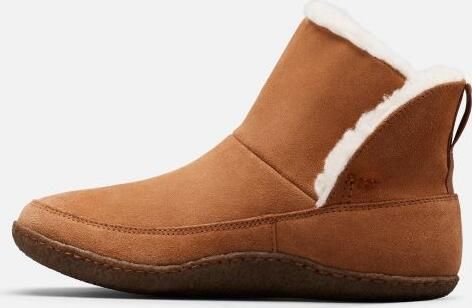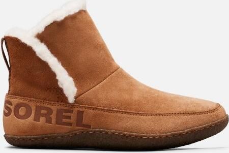 "The Nakiska Bootie from Sorel combines the best of both worldsu2013 the comfort of a slipper and the functionality of a bootu2013. These unique women's shoes are made of high-quality suede and offer unparalleled comfort with their faux fur lining and removable, molded EVA-fuu00dfbed. Whether you're relaxing at home or running errands around town, your feet will stay warm and comfortable all day long thanks to the non-slip rubber sole and soft lining. The Nakiska bootie is not only a fashion statement, but also a reliable companion for everyday wear."
