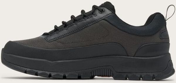 - "waterproof boot construction, textile upper with leather trim and heel"