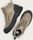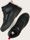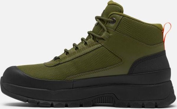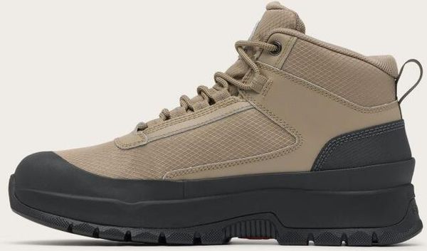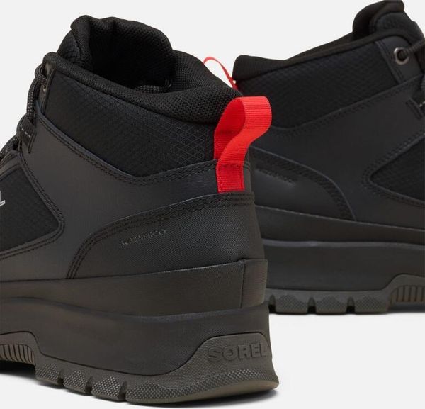 - "waterproof boot construction, textile upper with leather trim and heel"