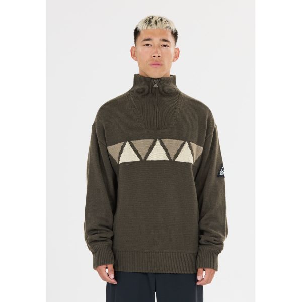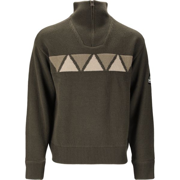 "The modern triangular pattern gives the sweater a stylish look that will impress both on the slopes and in the hut. The high-quality YKKhalf zip allows flexible adjustment to different weather conditions, while the elasticated cuffs ensure a perfect fit. This sweater is not only a fashion statement, but also a functional piece of clothing for anyone who enjoys being outdoors in winter"