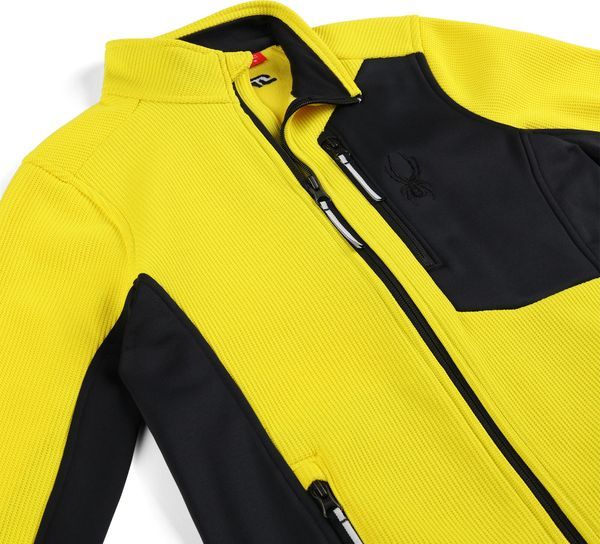 "The Bandit Jacket from Spyder combines the classic alpine pullover style with a modern design, offering the ideal blend of style and functionality for boysu00e4t. Made from lightweight polyester fabric, the jacket features an anti-pill fleece for extra warmth and comfort. The elastic stretch inserts on the sides and under the arms ensure unrestricted freedom of movement, making it the perfect choice for active days in the mountains."