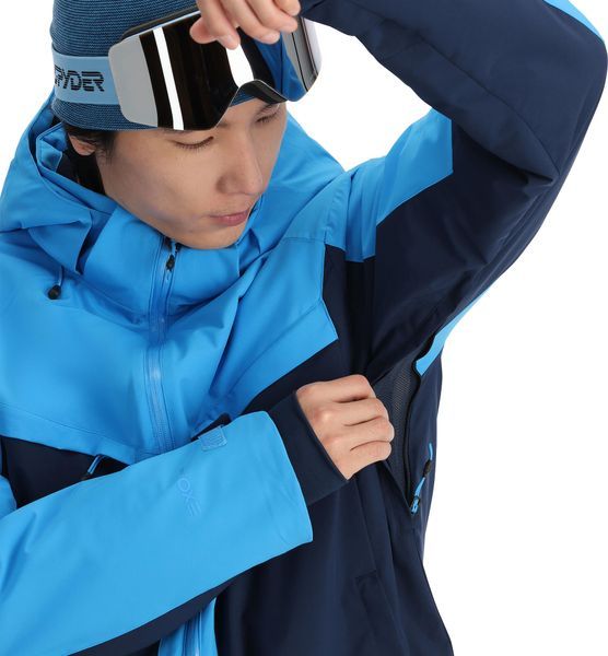 The cuffs are adjustable for a perfect fit and feature internal stretchcuffs and thumbholes. The hem can be individually adjusted using the drawstring, while the standard fit ensures a comfortable yet stylish silhouette. With a back length of 72.4 cm in size M, the jacket offers sufficient protection and freedom of movement. The Copper jacket is a true classic among Spyder jackets and impresses with bold colors and a symmetrical design that cuts a fine figure both on the slopes and in the city.