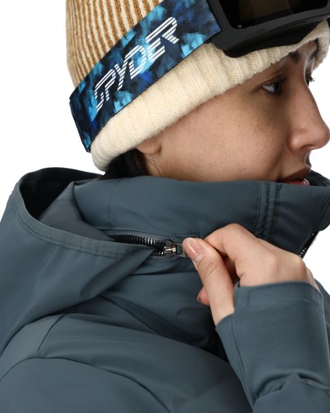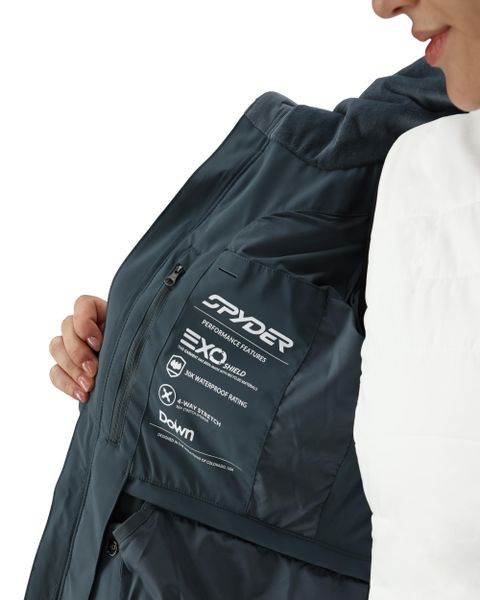 "The Falline Down Jacket from Spyder is the ideal companion for women who don't want to compromise on style and functionality even in cold weather. The jacket offers first-class thermal insulation with its 650-fill-power traceable down, while the Exo Shield 30K recycled nylon fabric with 30K/30K laminate is reliably wind- and waterproof. Thanks to the adjustable, concealed hood, which fits over most helmets, and the detachable snow skirt, you are perfectly prepared for changeable conditions."
