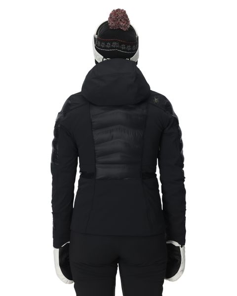 "The Granada Jacket by Spyder is a masterpiece of technical excellence and functionality, designed specifically for women. Featuring the innovative EXO SHIELD 30K, a 4-wege-stretch recycled nylon fabric, it offers an impressive 30,000 mm of water resistance and breathability that ensures maximum comfort even in extreme conditions. The DWRimpreu00e4gnation ensures that the jacket is water-repellent, while the fully sealed seams offer additional protection"