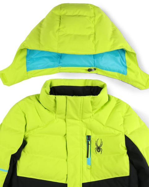 "The Impulse Synthetic Down Jacket from Spyder is the ideal choice for young adventurers who want to be optimally protected both on the ski slopes and in everyday life. Thanks to its waterproof properties with a wateru00e4ule of 10u00e4000 and synthetic down insulation, this jacket offers excellent protection against cold and wetu00e4sse. The innovative Exo Shield 10K Stretch-polyester fabric, combined with a 10K/10K laminate and a DWRcoating, ensures that the jacket provides reliable protection even in the most adverse weather conditions without restricting freedom of movementu00e4nken."
